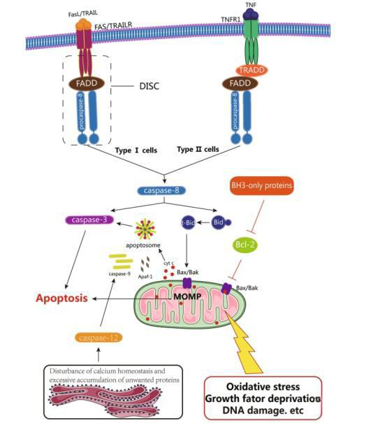 - 细胞凋亡信号通路:细胞凋亡通常是由一系列信号通路触发的。这些信号通路可以由内外部因素激活,如DNA损伤、细胞周期失控、细胞因子等。